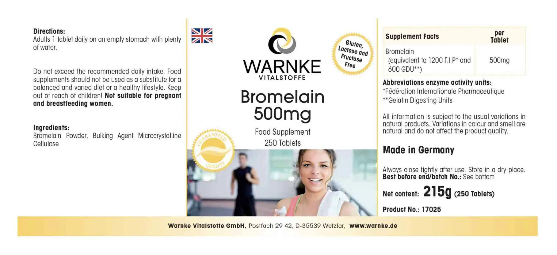 Produktinformationen "Bromelain 500mg (1200 F.I.P.) 250 Tabletten"