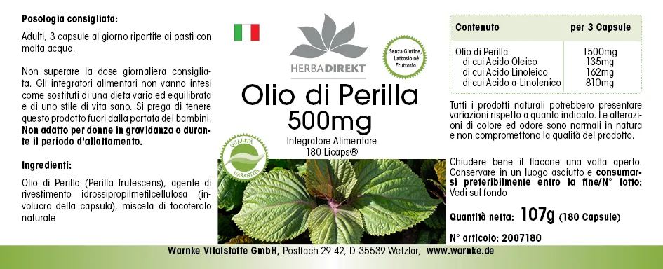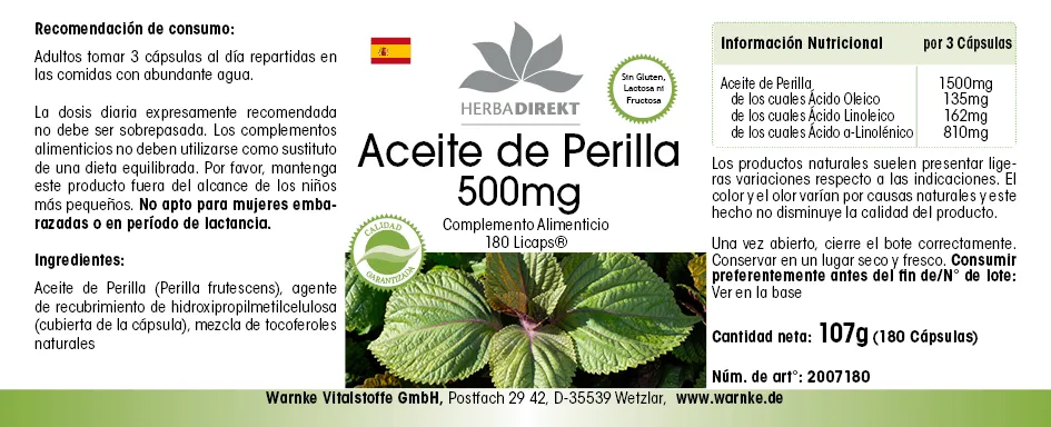 Información sobre el producto "Aceite de Perilla 500mg"