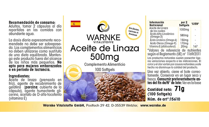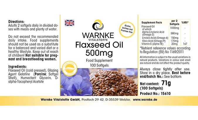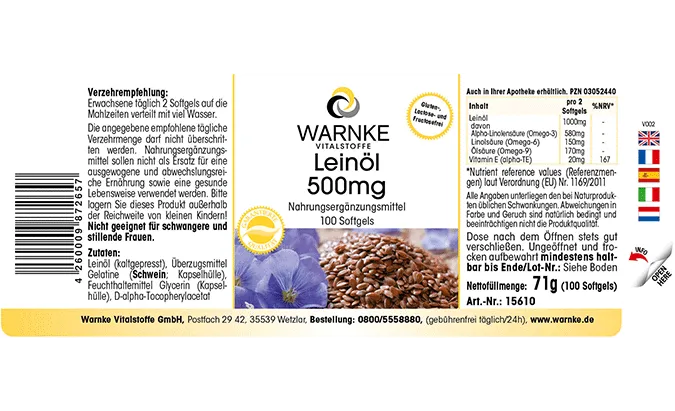 Información sobre el producto "Aceite de linaza 500mg - prensado en frío"