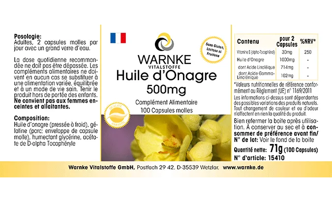 Información sobre el producto "Aceite de onagra 500mg - prensado en frío"