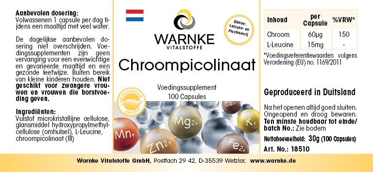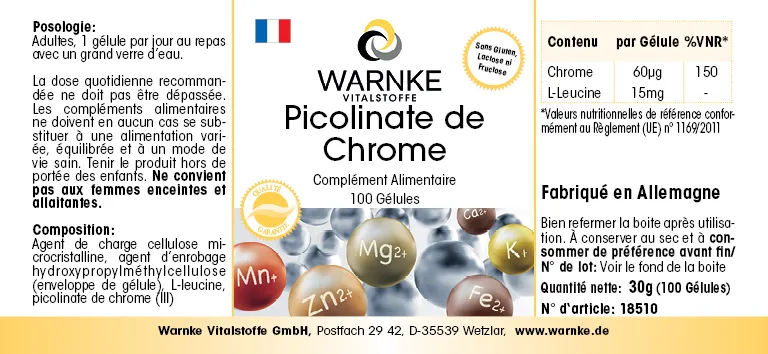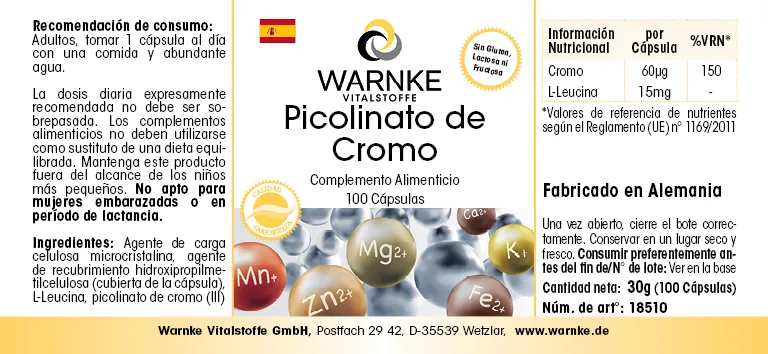 Información sobre el producto "Picolinato de cromo 60µg de cromo"