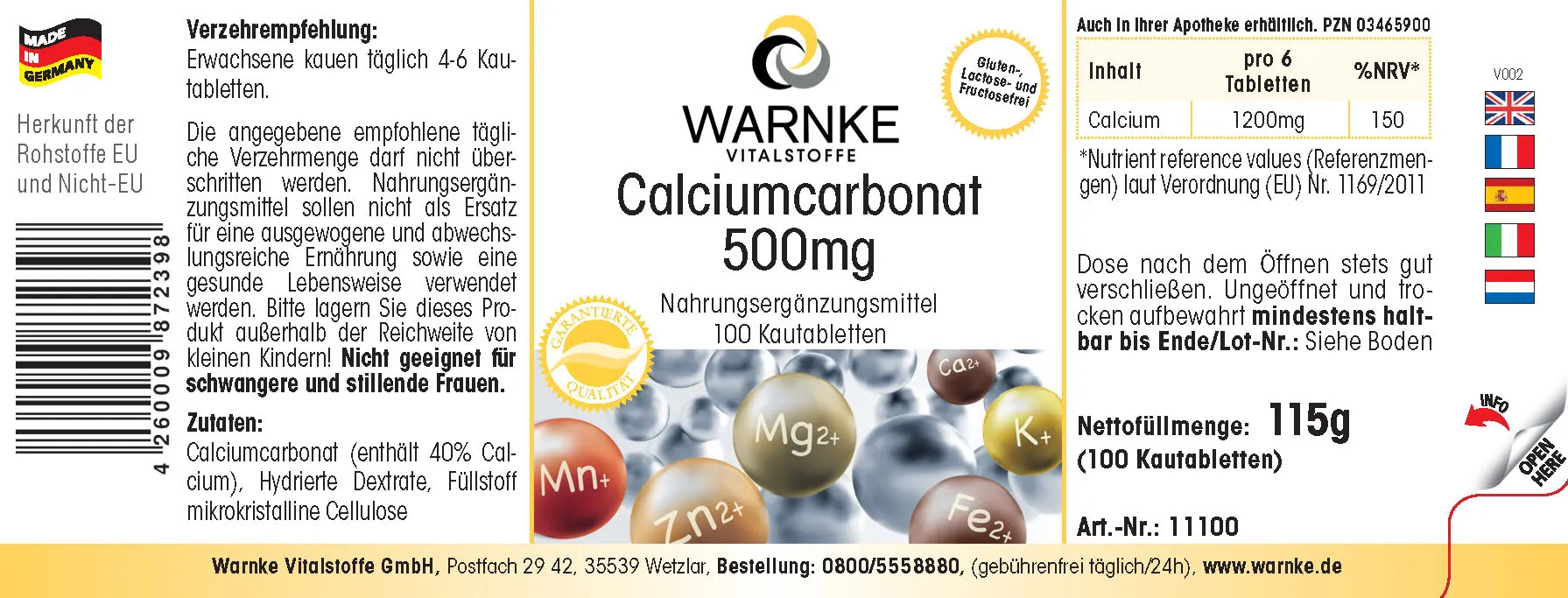 Produktinformationen "Calciumcarbonat 500mg 100 Kautabletten"