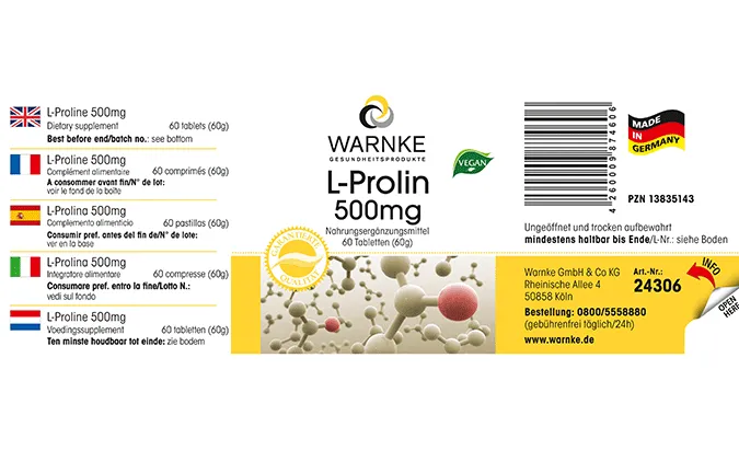 L-Prolin, Füllstoff mikrokristalline Cellulose, L-Leucin, Calciumsalze der Orthophosphorsäure