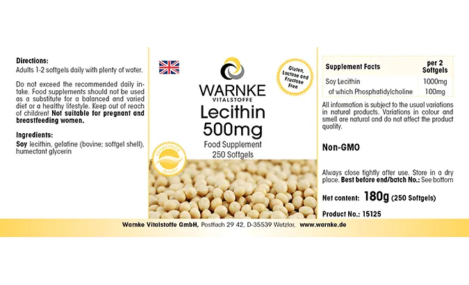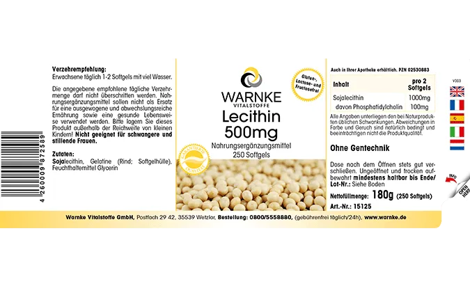 Produktinformationen "Lecithin 500mg - aus Soja 250 Softgels"