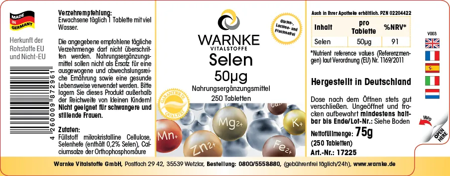Produktinformationen "Selen 50µg 250 Tabletten"