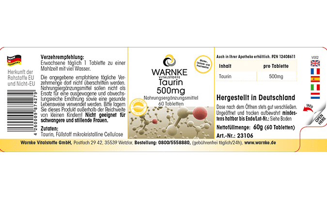Produktinformationen "Taurin 500mg"