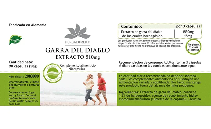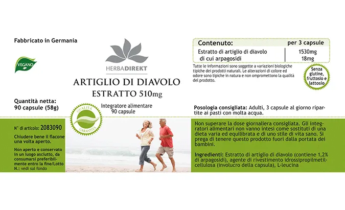 Teufelskrallen-Extrakt (enthält 1,2% Harpagoside), Überzugsmittel Hydroxypropylmethylcellulose (Kapselhülle), L-Leucin