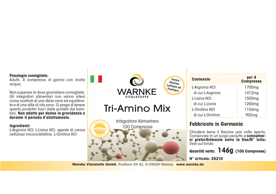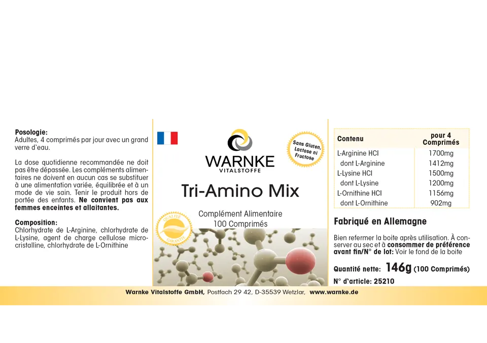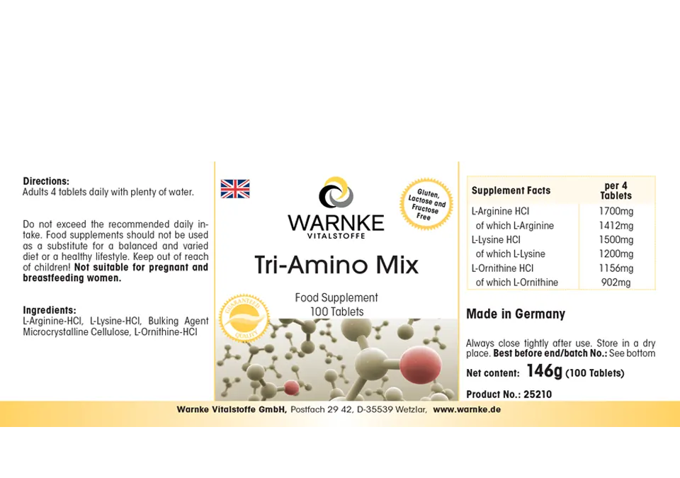 L-Arginin-HCl, L-Lysin-HCl, Füllstoff mikrokristalline Cellulose, L-Ornithin-HCl