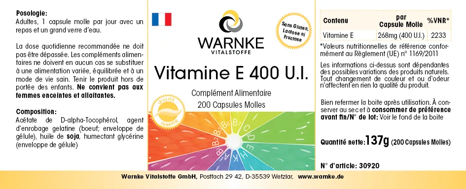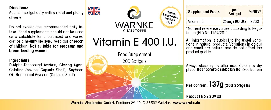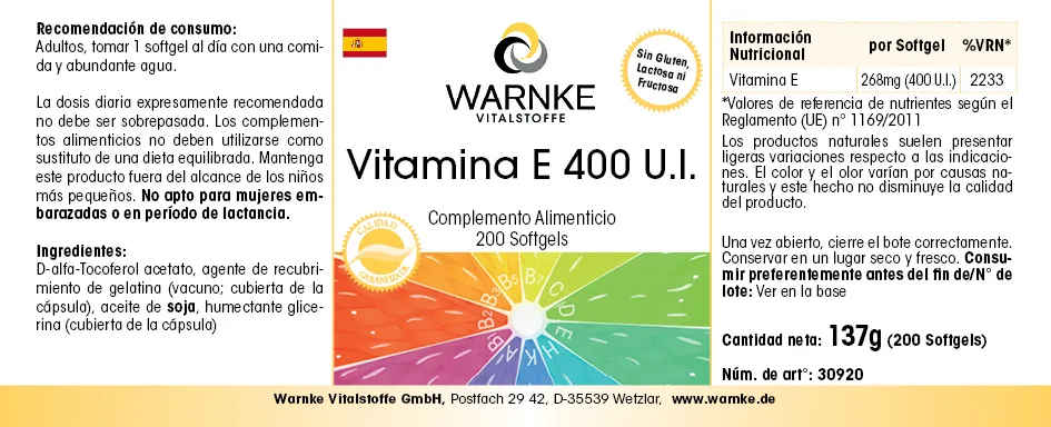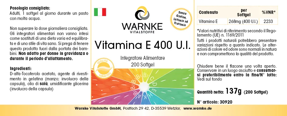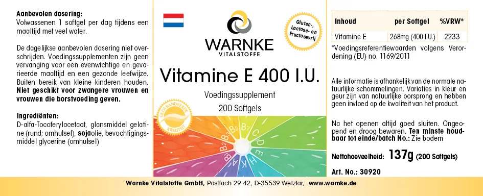 | Vitamin / Vitamine / Vitamina E | 268mg (400 I.E.) | 2233 |