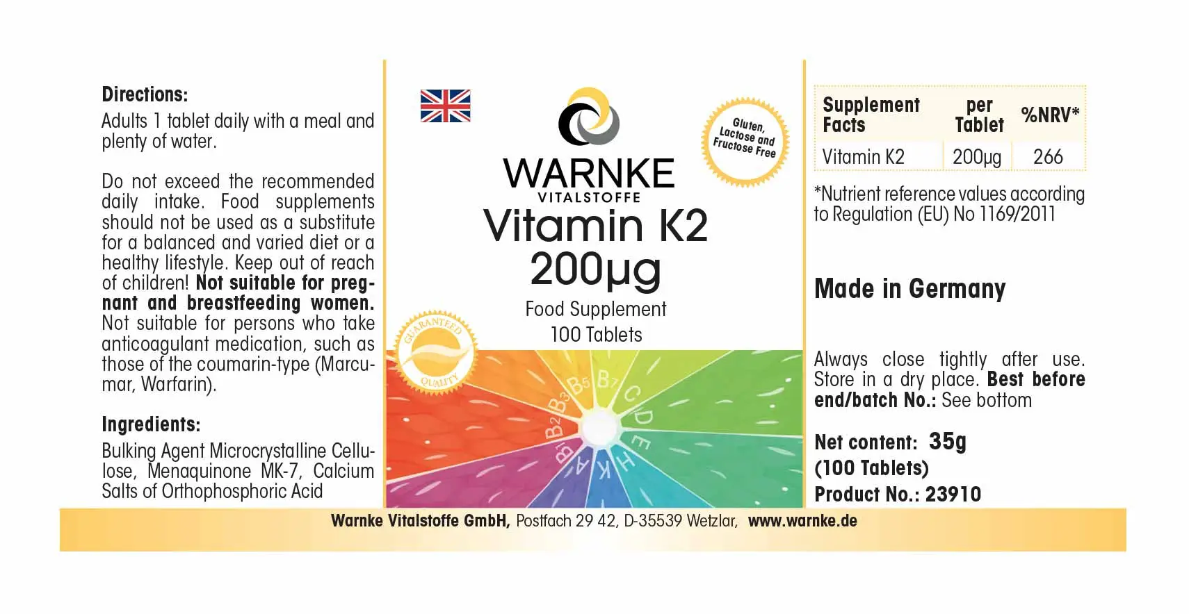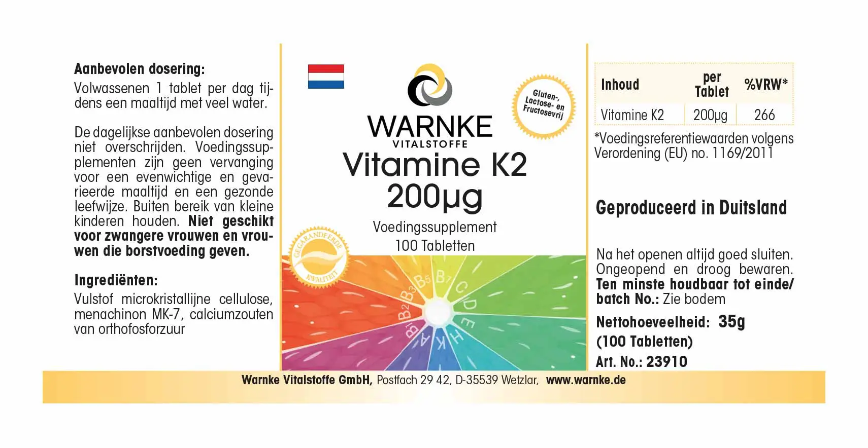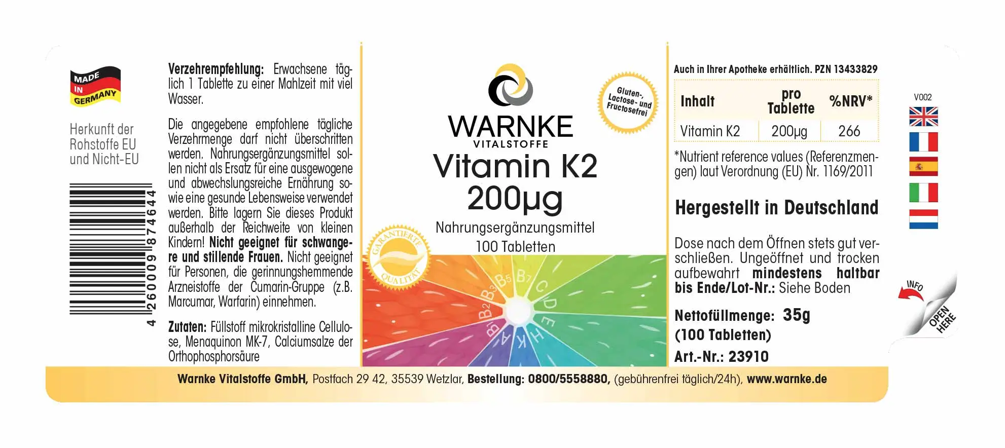 Produktinformationen "Vitamin K2 200µg 100 Tabletten"