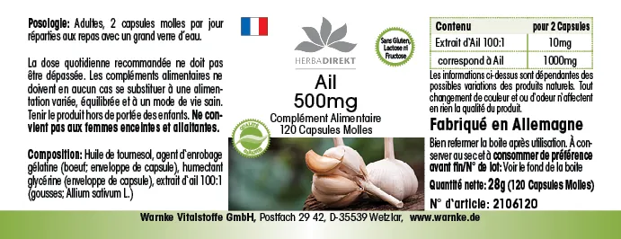 glycérine (enveloppe de capsule), extrait d‘ail 100:1