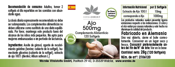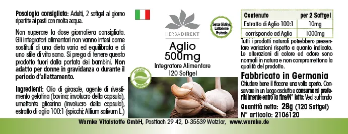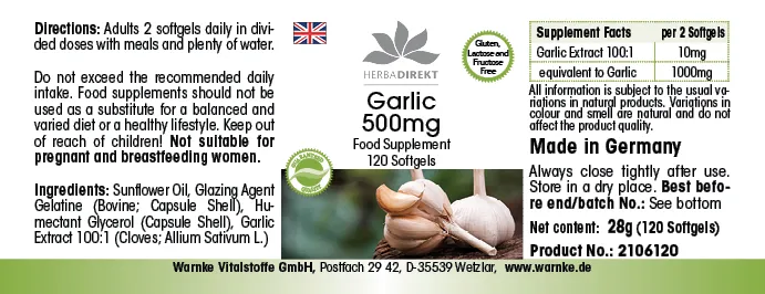 | entspricht Knoblauch / Corresponds to garlic / Equivalente all'aglio / Gelijkwaardig aan knoflook | 1000mg |