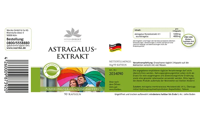 Astragalus membranaceus extrait de racine (4:1), agent d'enrobage hydroxypropylméthylcellulose (enveloppe de la gélule), talc
