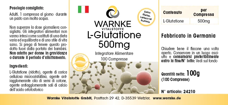 L-Glutathione (ridotto), agente di carica cellulosa microcristallina, sali di calcio dell’acido ortofosforico