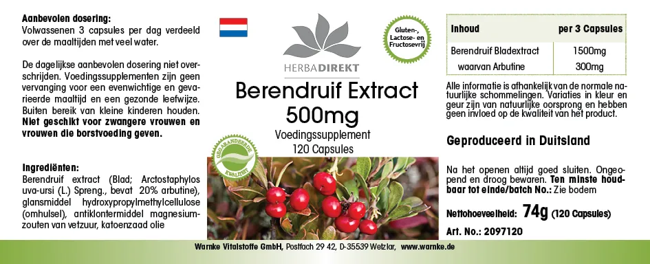 Productinformatie "Berendruif extract 500mg"