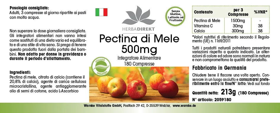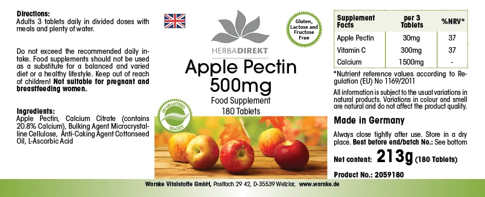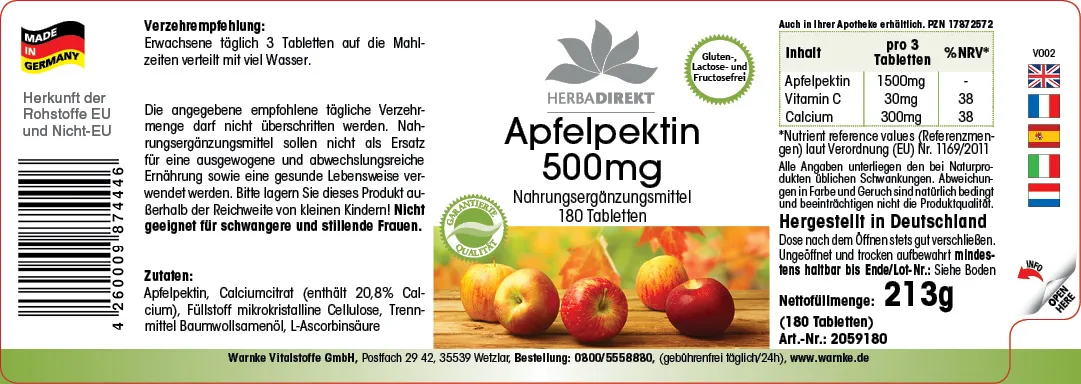 Apfelpektin, Füllstoff mikrokristalline Cellulose, Säuerungsmittel Dicalciumphosphat, L-Ascorbinsäure