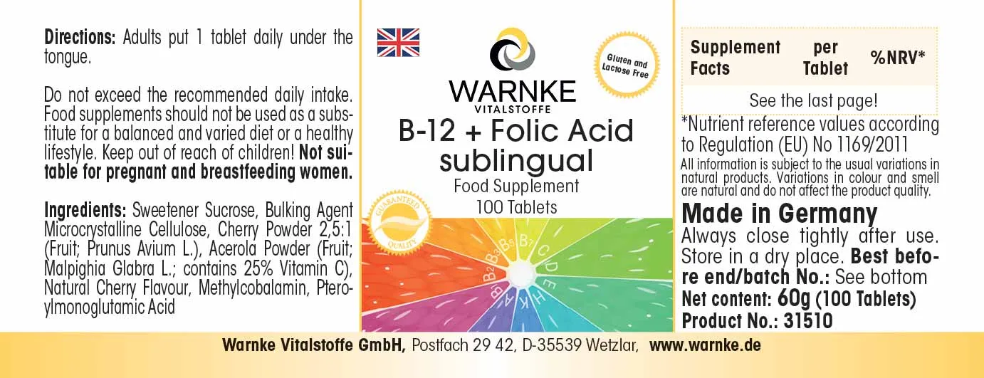 Produktinformationen "B-12 + Folsäure sublingual mit Acerola"