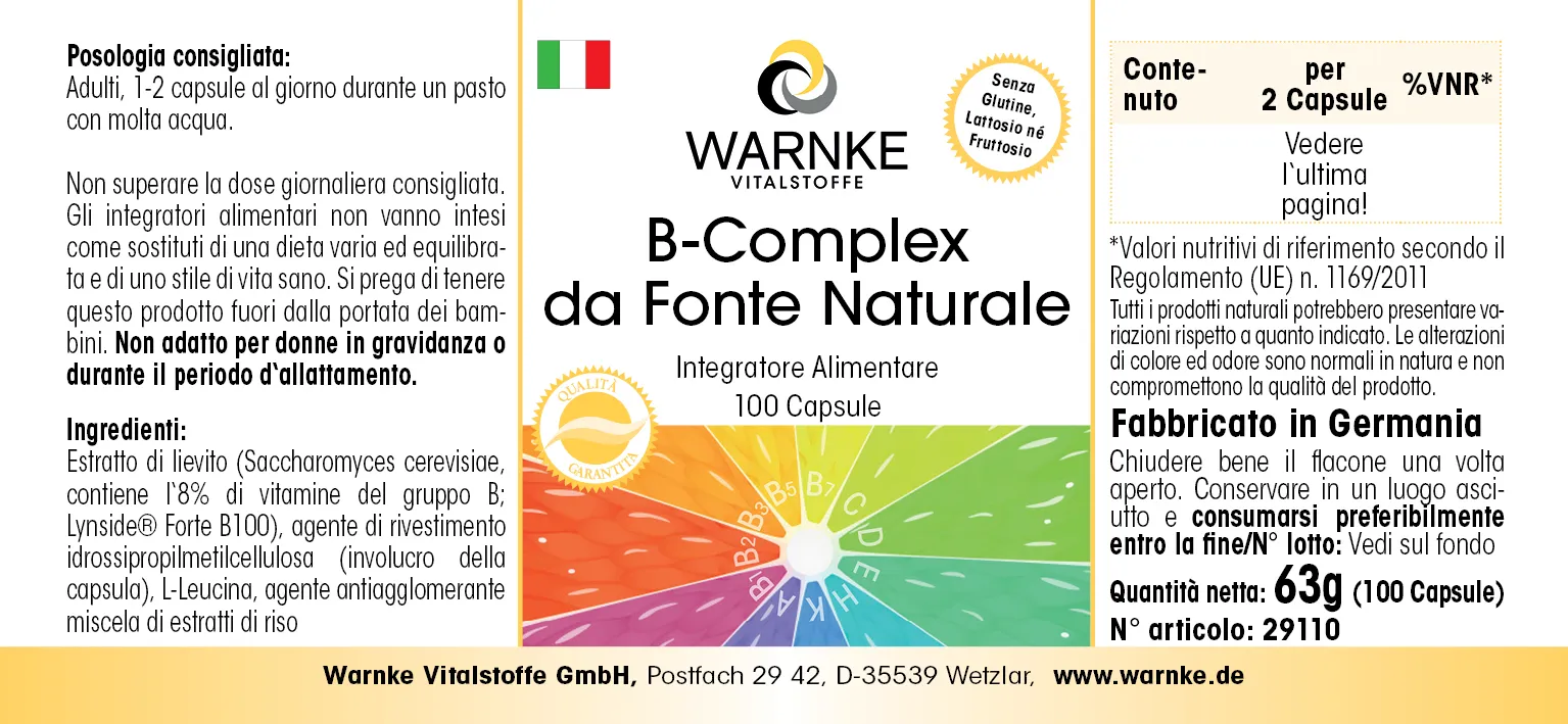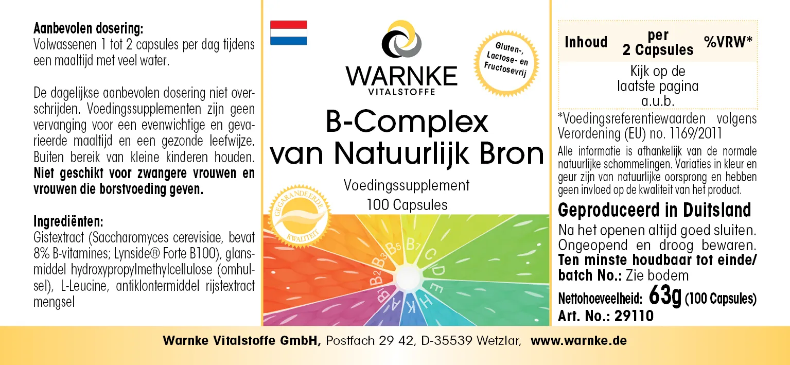 Hefeextrakt (Saccharomyces cerevisiae, enthält 8% B-Vitamine; Lynside® Forte B100), Überzugsmittel Hydroxypropylmethylcellulose (Kapselhülle), L-Leucin, Trennmittel Reis-Extrakt Mischung