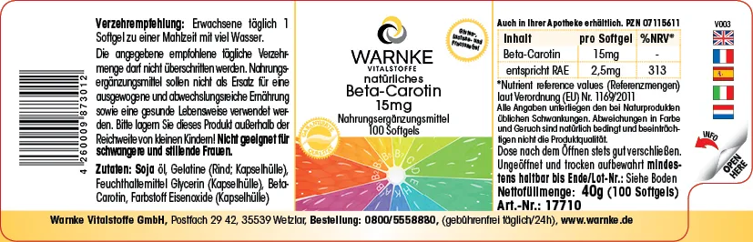 Produktinformationen "Beta Carotin 15mg natürlich"