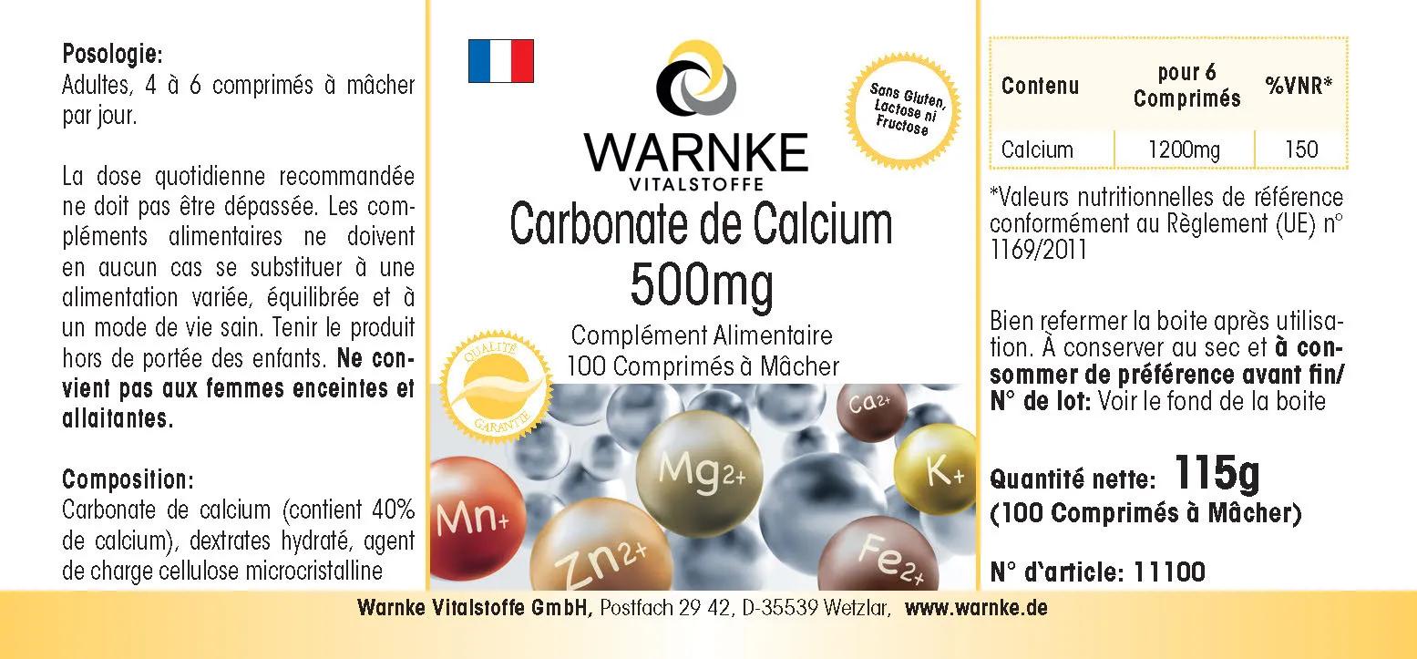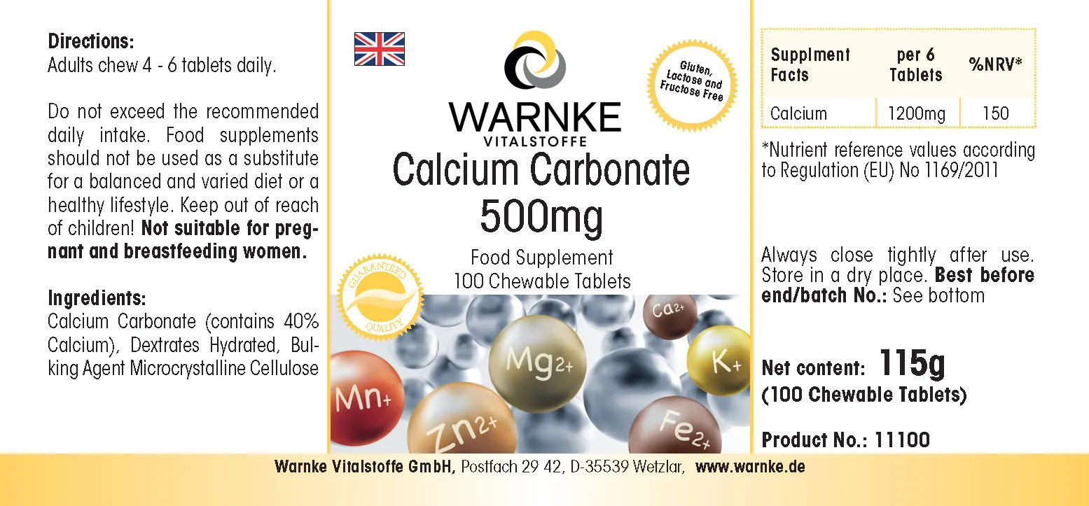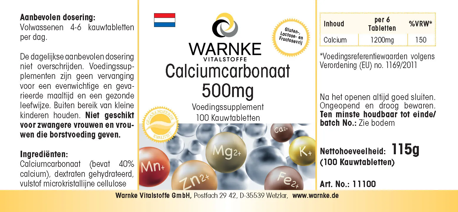 Produktinformationen "Calciumcarbonat 500mg 100 Kautabletten"