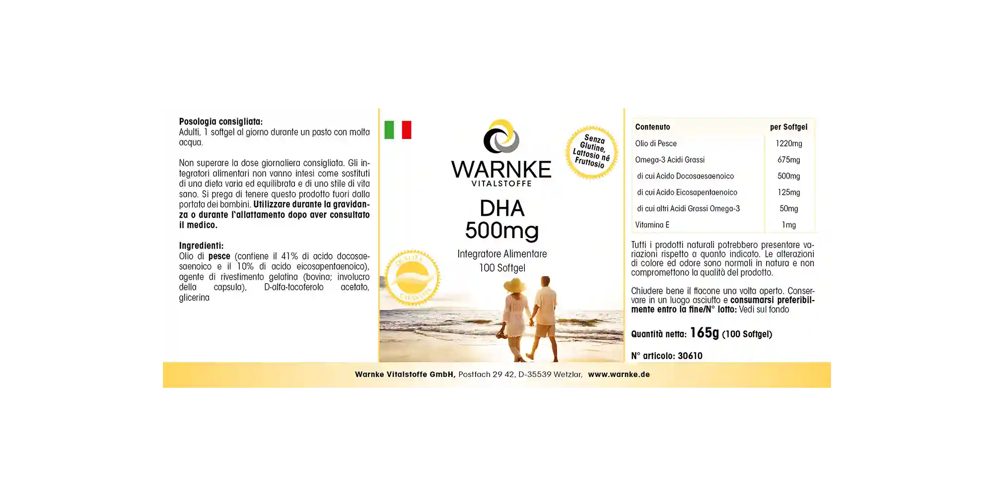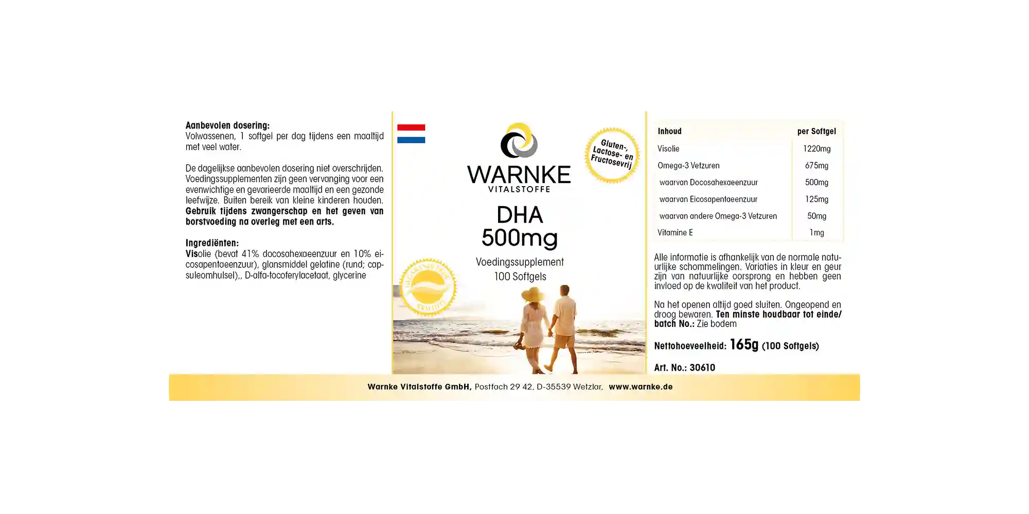 Fischöl (enthält 41% Docosahexaensäure und 10% Eicosapentaensäure), Überzugsmittel Gelatine (Rind; Kapselhülle), D-alpha-Tocopherylacetat,Glycerin