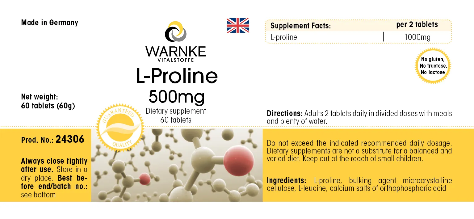 L-Prolin, Füllstoff mikrokristalline Cellulose, L-Leucin, Calciumsalze der Orthophosphorsäure