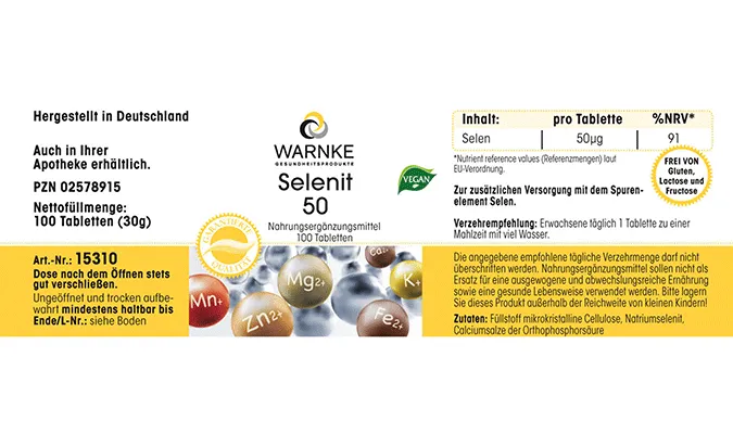 Füllstoff mikrokristalline Cellulose, Natriumselenit, Calciumsalze der Orthophosphorsäure