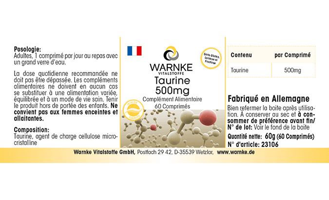 Taurin, Füllstoff mikrokristalline Cellulose, Säureregulator Calciumhydrogenphosphat