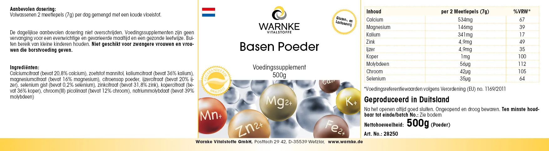 | Inhalt / Content / Contenu / Contenido / Contenuto / Inhoud | pro 2 Messlöffel (7g) / per 2 Measuring Spoons (7g) / pour 2 Mesurettes (7g) / por 2 Cucharadas medidoras (7g) / per 2 Misurini (7g) / per 2 Meetlepels (7g) | %NRV* / %VNR* %VRN* /%VRW* |