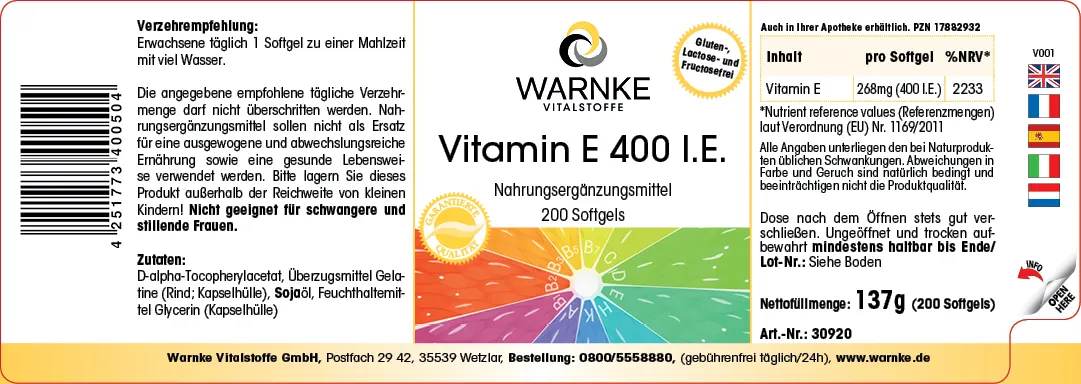 Product information "Vitamine E 400 U.I."
