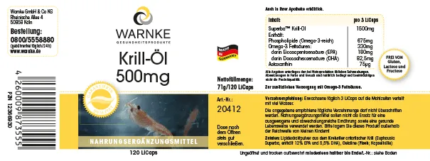 Extracto de lípidos en polvo de Krill antártico (crustáceo; Euphausia Superba, contiene un 12% de EPA y un 5,5% de DHA), agente de recubrimiento gelatina (de pescado, cubierta de la cápsula)