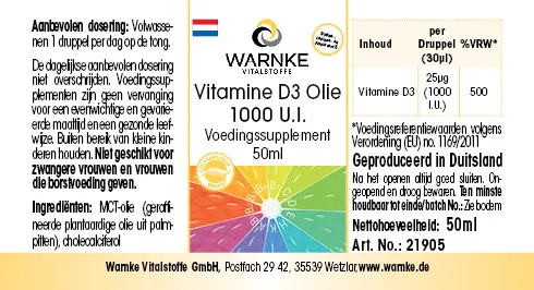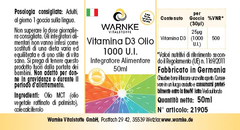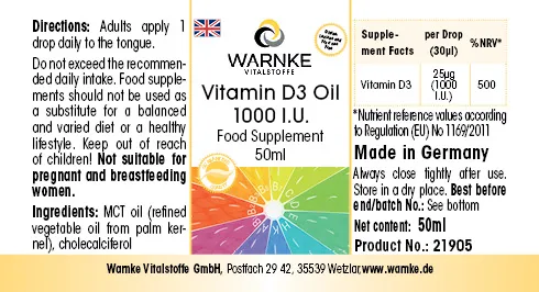 Produktinformationen "Aceite de vitamina D3 1000 I.U."
