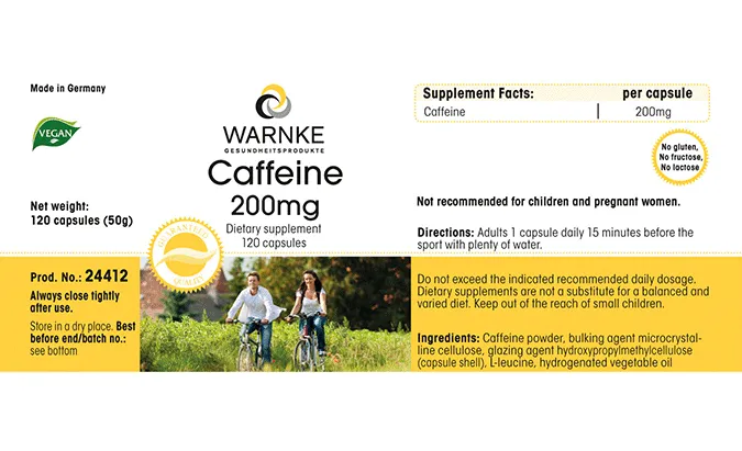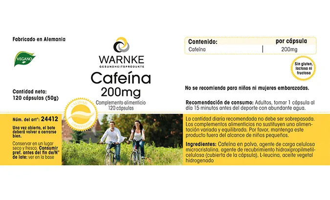 Cafeína en polvo, agente de carga celulosa microcristalina, agente de recubrimiento hidroxipropilmetilcelulosa (cubierta de la cápsula), L-Leucina, aceite vegetal hidrogenado