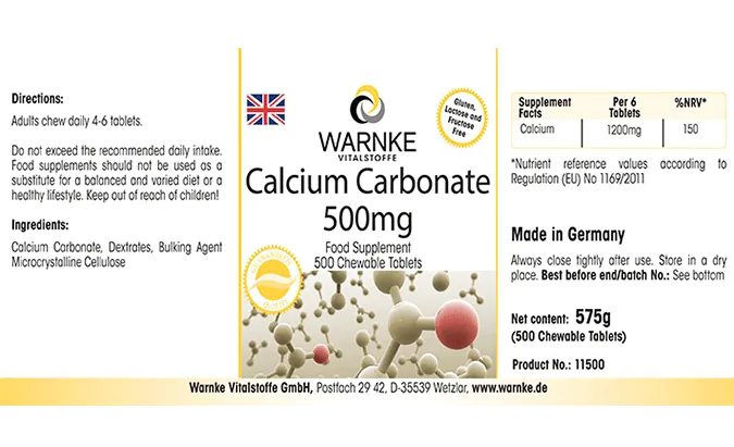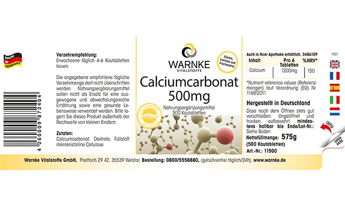 Carbonato de calcio, dextratos, agente de carga celulosa microcristalina