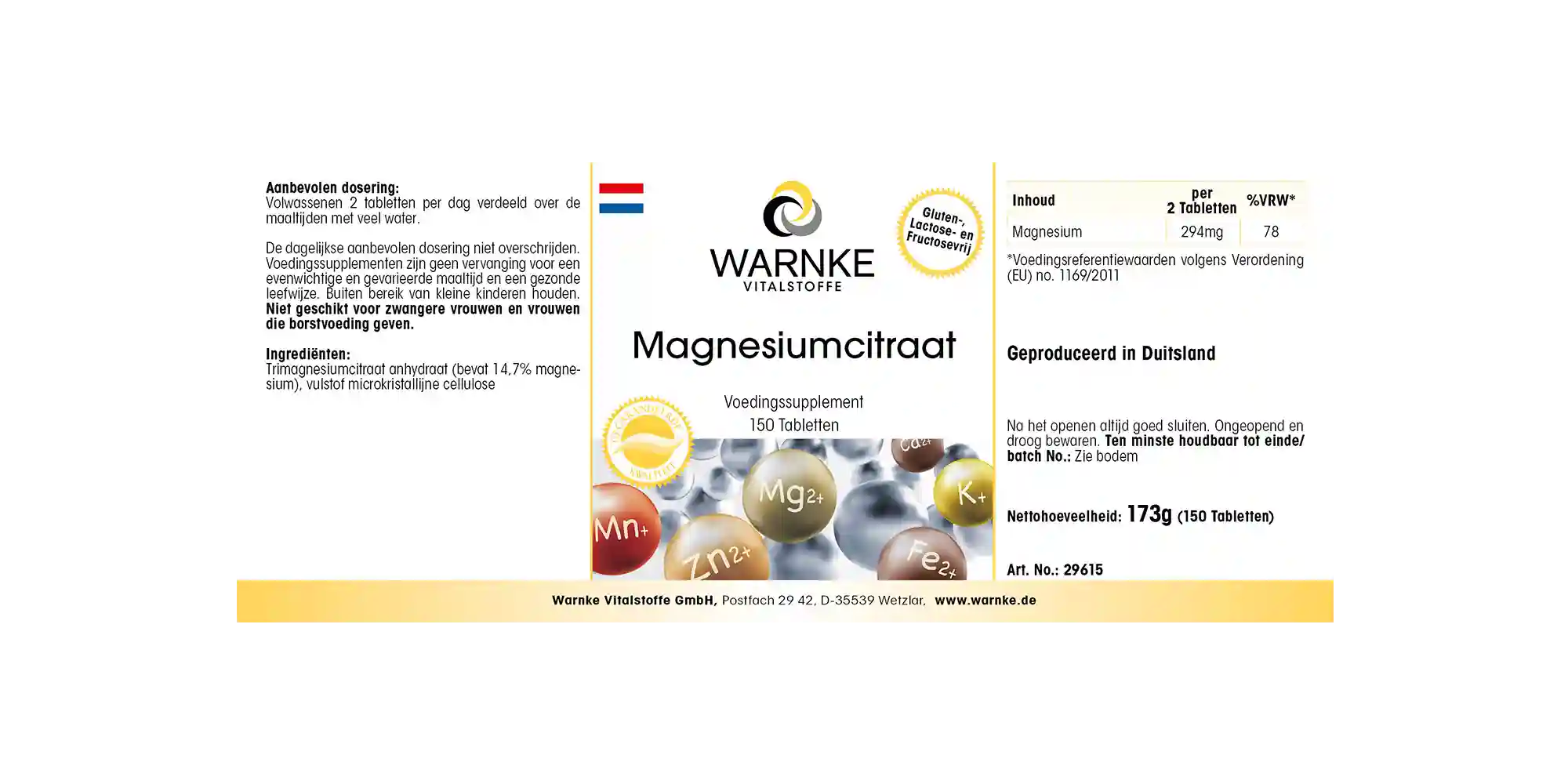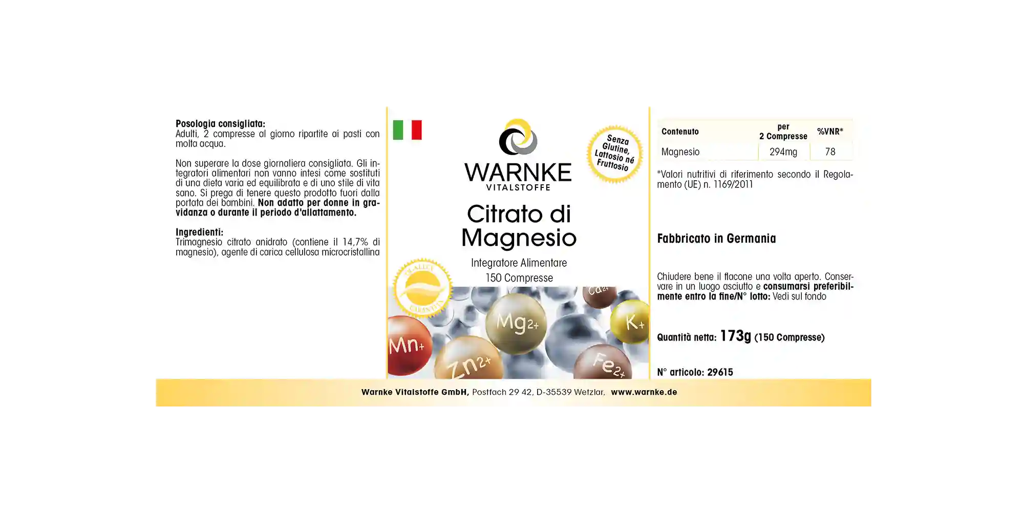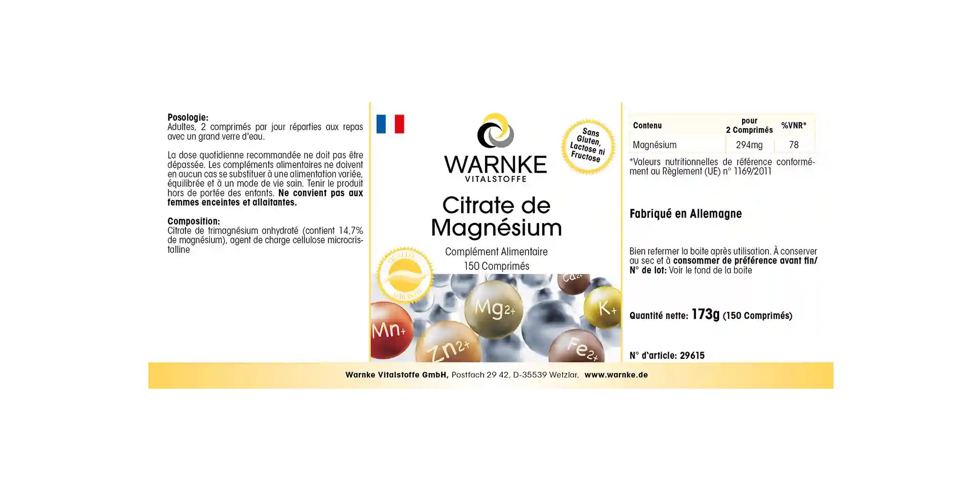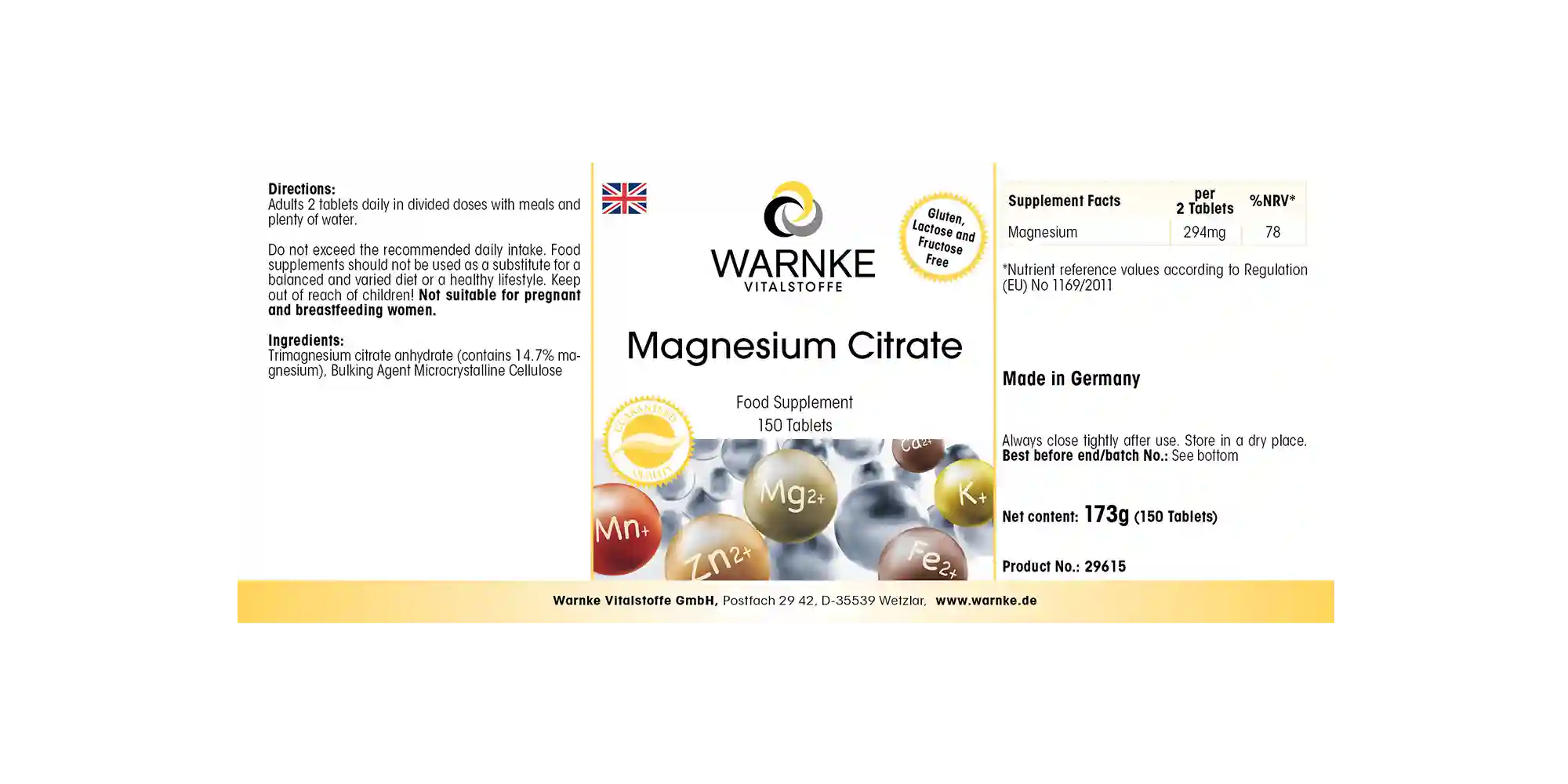 Das Magnesium in diesem Vitalstoff-Präparat von Warnke liegt als hochwertiges Trimagnesiumdicitrat vor.