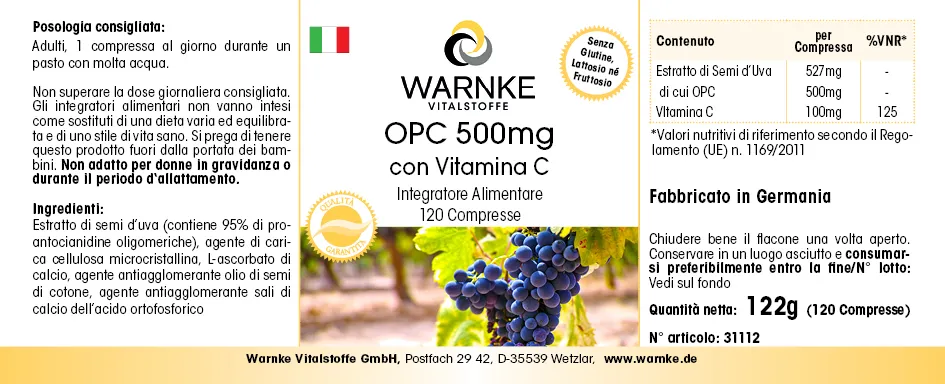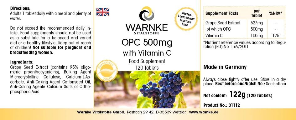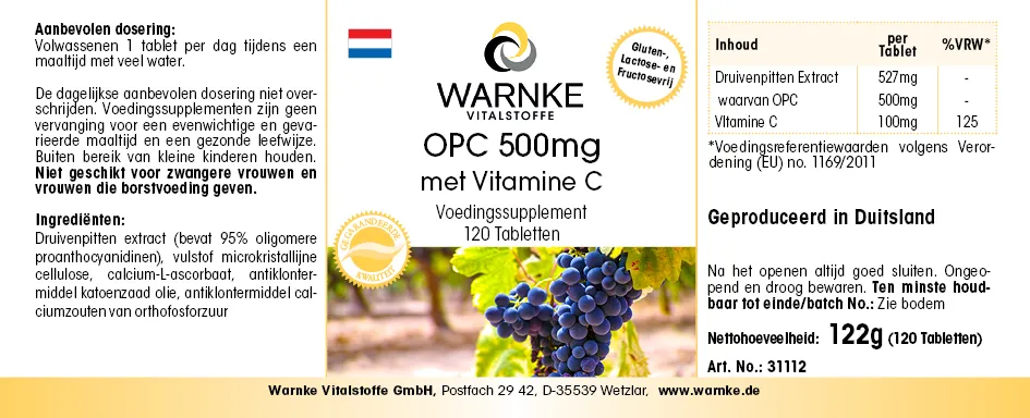 | Traubenkern Extrakt / Grape seed extract / Extrait de pépins de raisin / Extracto de semilla de uva / Estratto di semi d'uva / Druivenpitextract | 527mg | - |