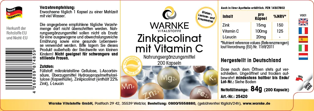 | Zink / Zinc / Zinco | 15mg | 150 |