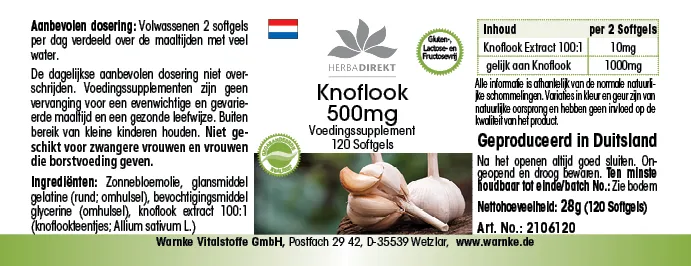 | entspricht Knoblauch / Corresponds to garlic / Equivalente all'aglio / Gelijkwaardig aan knoflook | 1000mg |