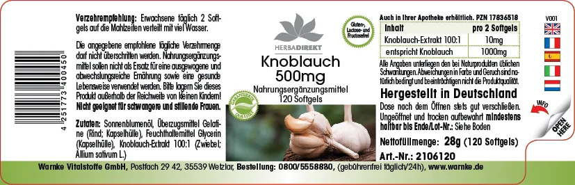 | Knoblauch-Extrakt / Garlic extract / Extrait d'ail / Estratto di aglio / Knoflookextract 100:1 | 10mg | |