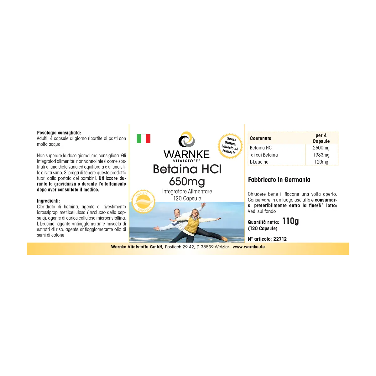 Betaina cloridrato, agente di rivestimento idrossipropilmetilcellulosa (involucro della capsula), agente di carica cellulosa microcristallina, L-Leucina, miscela di estratti di riso, olio di semi di cotone