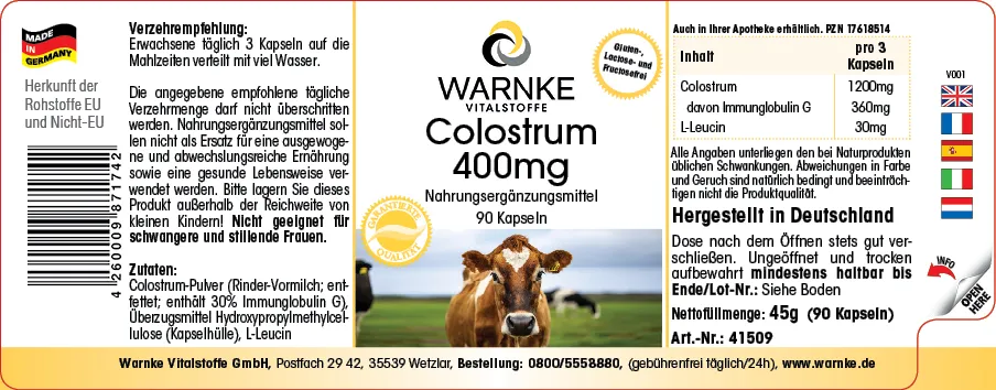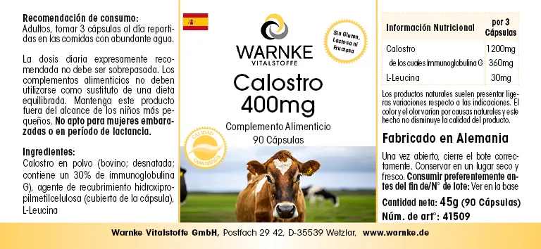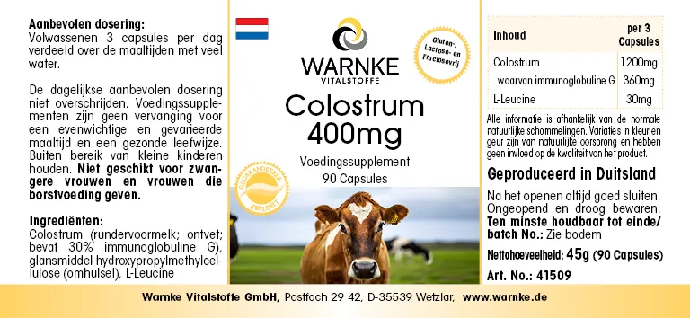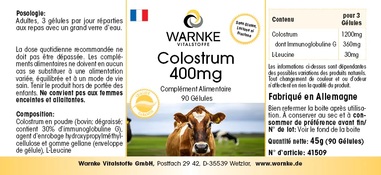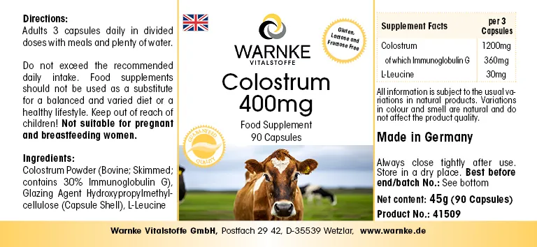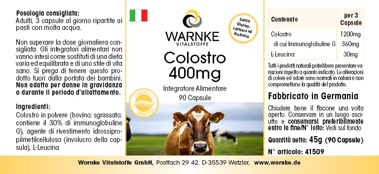 Colostro (78%), agente di rivestimento idrossipropilmetilcellulosa (involucro della capsula), agente di carica cellulosa microcristallina, agente antiagglomerante sali di magnesio degli acidi grassi