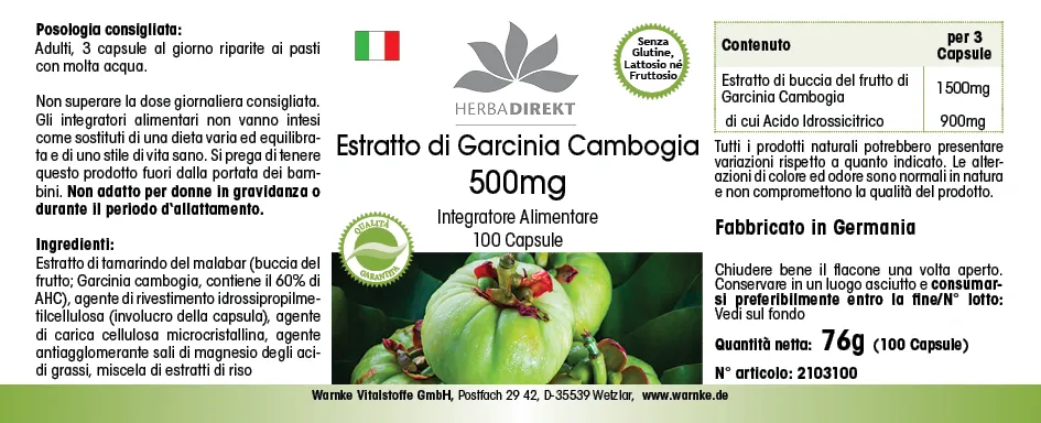Info sui prodotti "Estratto di Garcinia Cambogia 500mg"