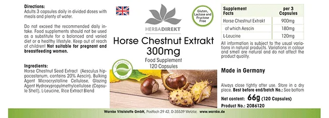 Estratto di ippocastano (Aesculus hippocastanum L.; contiene il 20% di Escina), agente di carica cellulosa microcristallina, agente di rivestimento idrossipropilmetilcellulosa (involucro della capsula), L-Leucina, miscela di estratti di riso