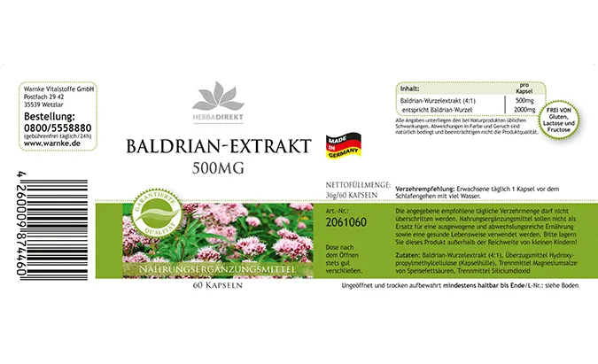 Estratto di radice di valeriana 4:1, agente di rivestimento idrossipropilmetilcellulosa (involucro della capsula), antiagglomerante sali di magnesio degli acidi grassi, antiagglomerante diossido di silicio