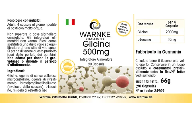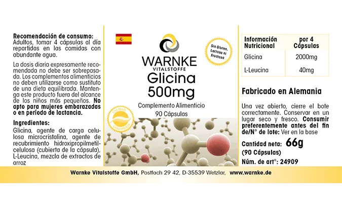 Glycine, vulmiddel microkristallijne cellulose, coatingmiddel hydroxypropylmethylcellulose (capsuleomhulsel), L-leucine, rijstextractmengsel