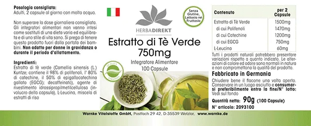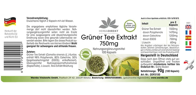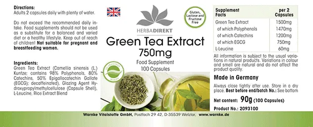 Productinformatie "Groene Thee-Extract 750mg"