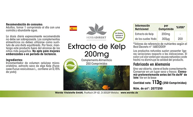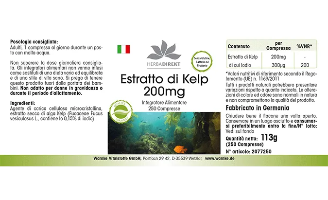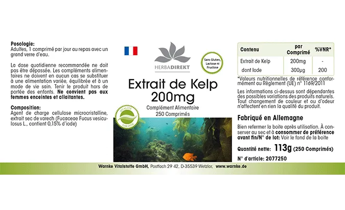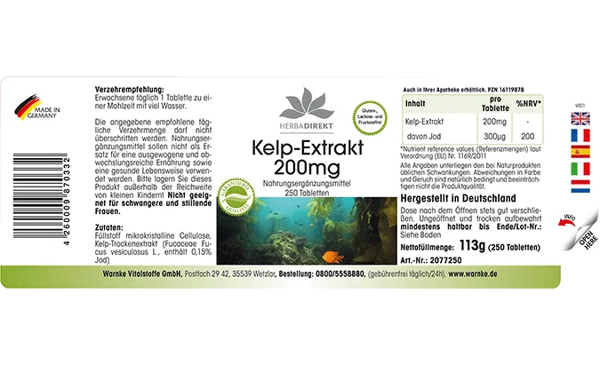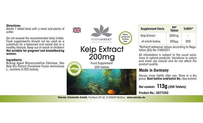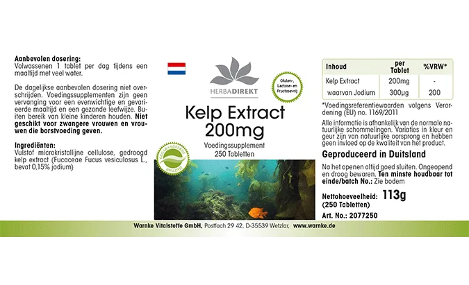 Productinformatie "Kelp-Extract 200mg met 300µg Jodium 250 Tabletten"