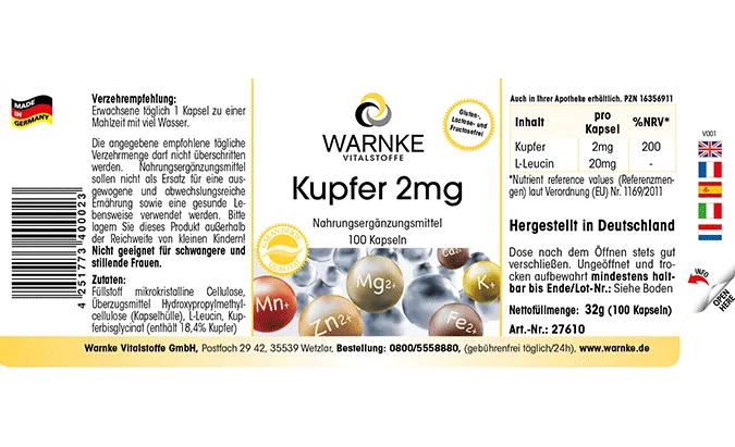 | Kupfer / Copper / Cuivre / Cobre / Rame / Koper | 2mg | 200 |