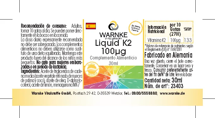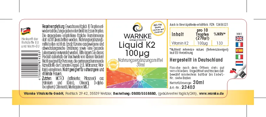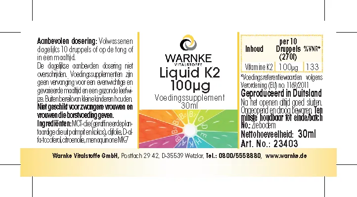 Productinformatie "Vloeibare K2 100µg 30ml"